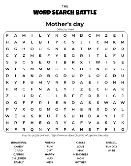 Enjoy our free Mother's day Word Search puzzle online in real-time battle with your friend, or play a classic single-player game. There are easy, medium, and hard difficulty levels for new and advanced players.